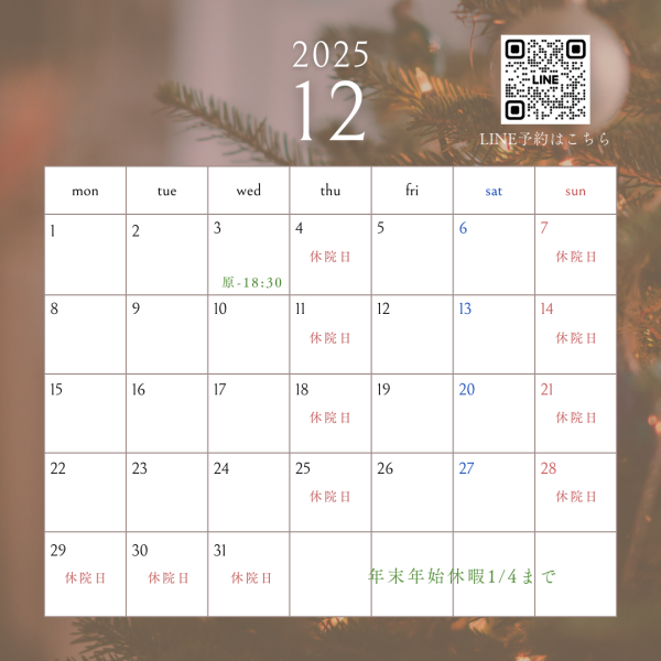 年末年始は12/28(日)-1/4の期間お休みをいただいております🙇